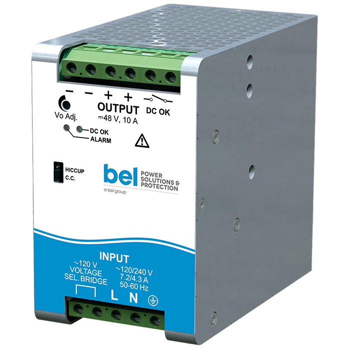 DIN-Rail AC-DC Power Supply | Power 480W | Output 72VDC, 6.7A | Input 90-264VAC | Includes internal ORing diode | RoHS Compliant