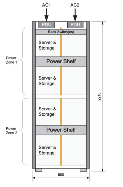 As a result, the OCP specification supports 13.2 kW of IT equipment within the rack. This is accomplished through the use of two power shelves within the rack, each of which consists of three power supplies in an N + 1 configuration. Each shelf supports a different zone within the rack and is connected to the rack management controller or facilitylevel monitoring to collect data on temperature, power in, power out, and utilization. Power shelves can also include “smart boxes” which archive data in the event of a failure for diagnostics.