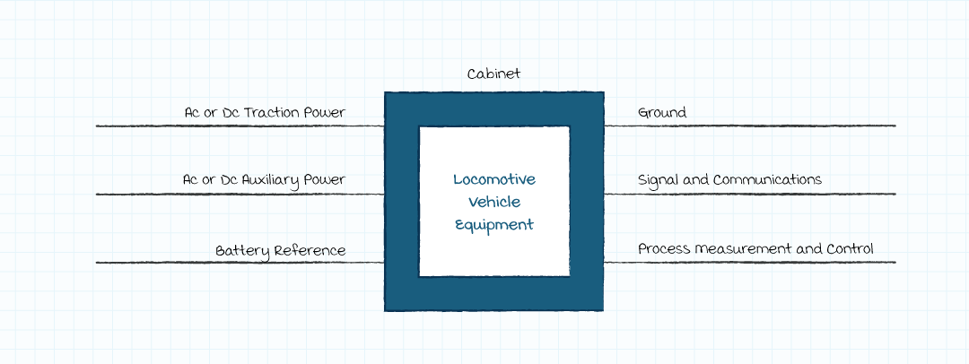 For battery ports, there are no conducted emissions limits in the frequency of 9 kHz~150 kHz. The same EMC requirements apply to battery-referenced, signal and communication, process measurement and control ports and are specified in EN 50121-3-2. Immunity test requirements are specified in EN 50121-3-2.